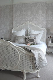 Lately I've been a little obsessed with just switching some things up around the house partly due to spring and also I think because we've been here about 8 months now and I'm just starting to get a feel for how I want things to really look. I love our master bedroom because of it's views. Every window has a view of lots of trees and the creek below- it's almost like a private little tree house. When we bought the house the room was painted a moss green color that made things feel smaller than they were. I kept the paint very light- Benjamin Moore in Seed Pearl which instantly gave it an almost ethereal feel- light and very airy. That Shabby Chic bedding from our old master was a perfect fit here too and I think the only new piece of furniture is the white captains chair in the corner. By the way I tried to keep the cats out of my shots but I was the one intruding on their turf after all so I just went with it.